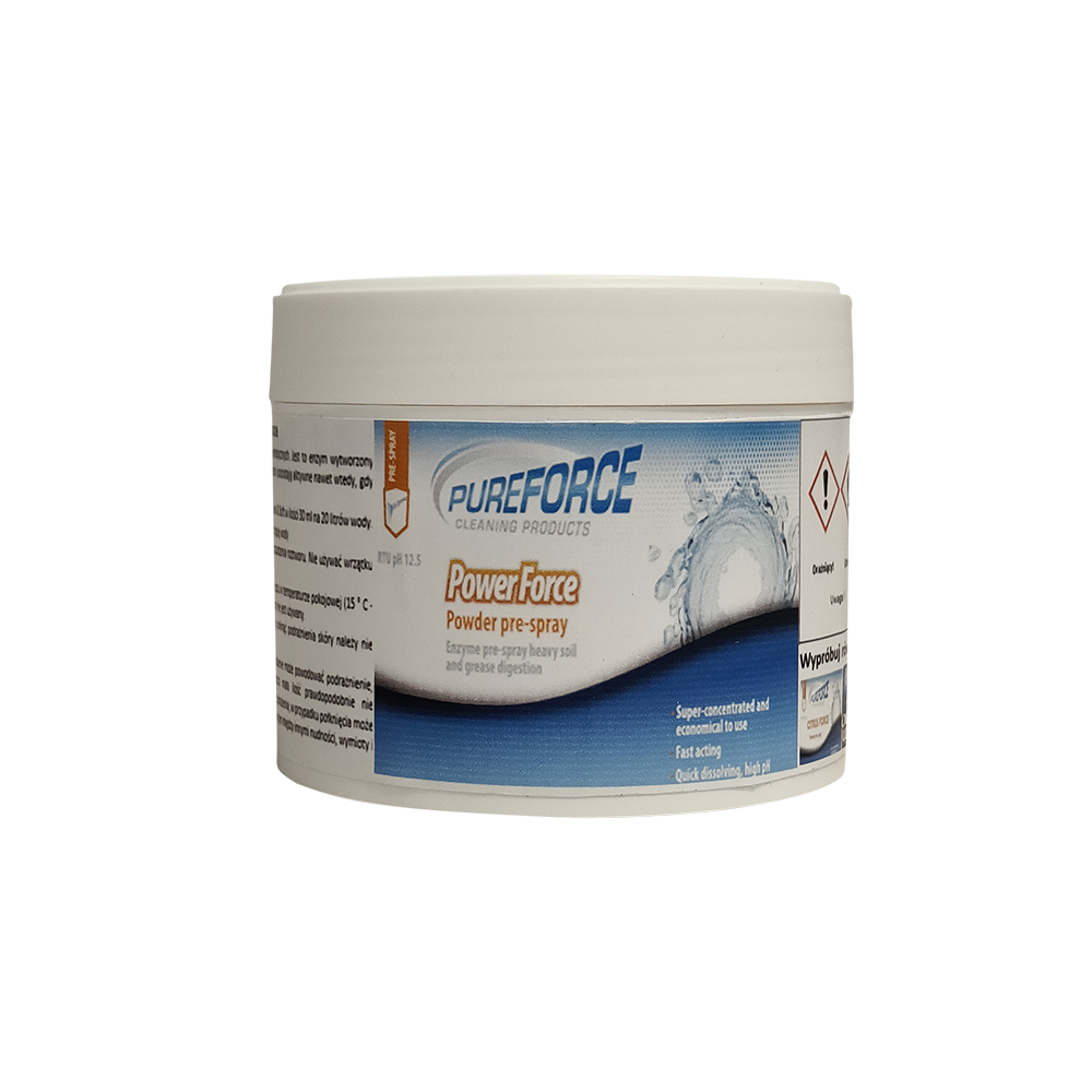 Pureforce to linia produktów specjalnie przeznaczona do czyszczenia trudnych materiałów. Środki te radzą sobie z zabrudzeniami, które są trudne do usunięcia tradycyjnymi metodami, oferując skuteczność bez kompromisu w zakresie bezpieczeństwa materiału. Profesjonalne środki do czyszczenia trudnych materiałów Pureforce są idealne do zastosowania w miejscach o dużym natężeniu ruchu, takich jak szkoły, kasyna, hotele czy lotniska. Przy prawidłowym użyciu, te produkty przecinają tłuszcz, brud, sadzę, dym oraz plamy z żywności czy napojów, co czyni je niezwykle efektywnymi.